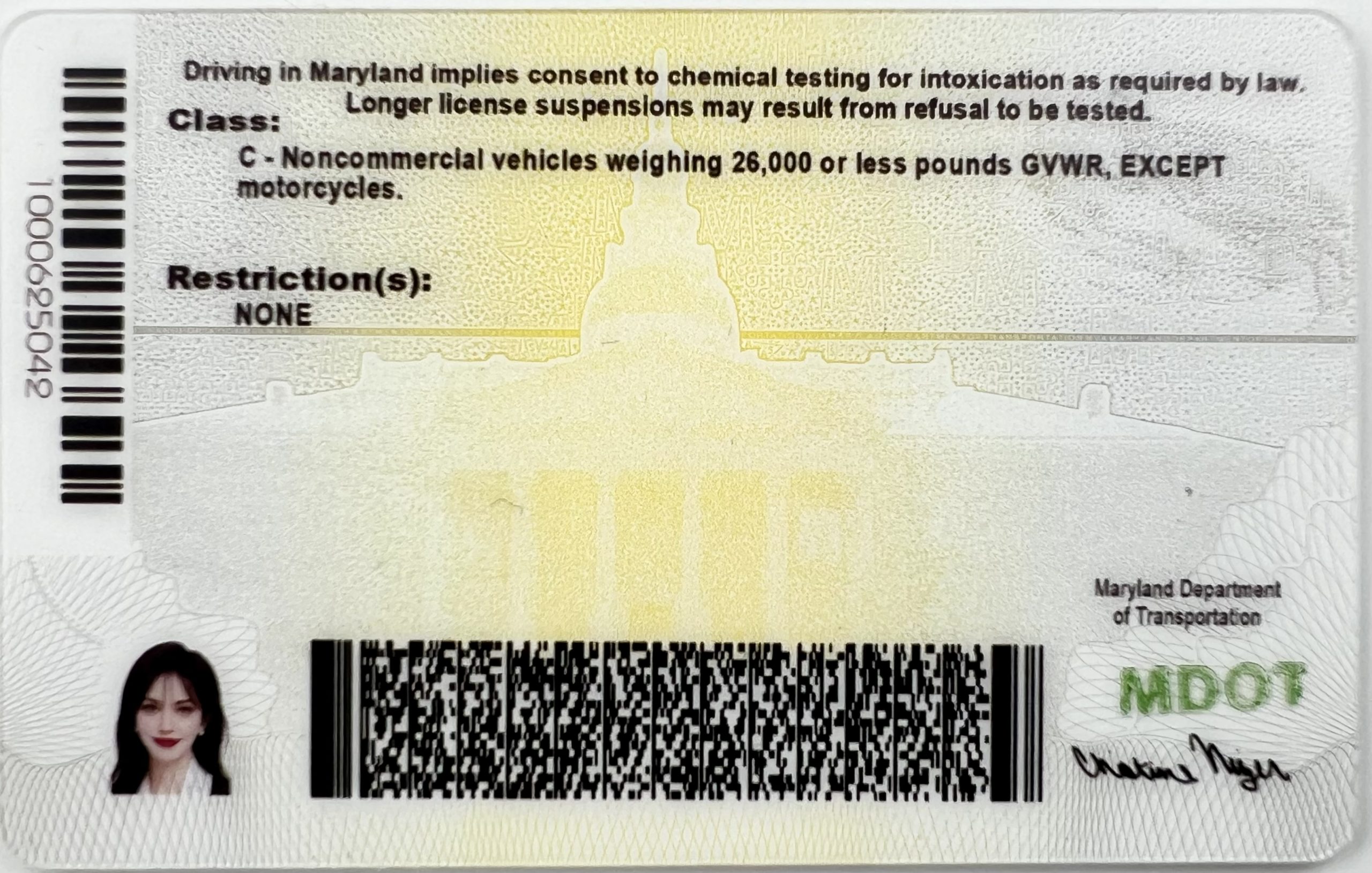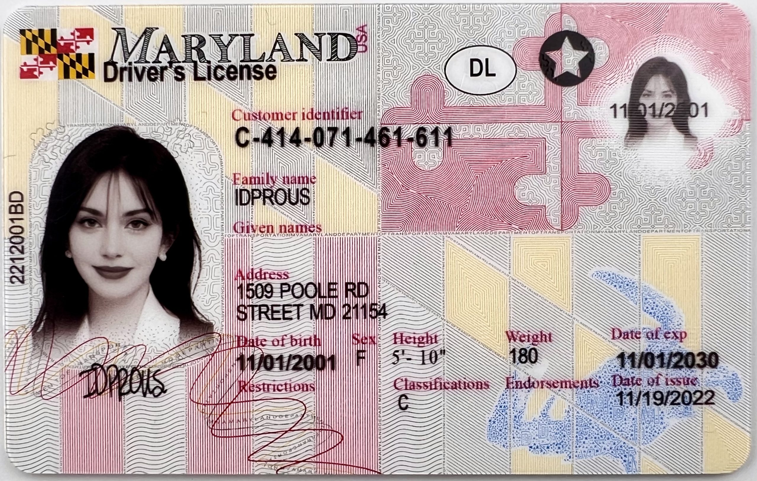 Looking for a scannable ID to bypass age restrictions, access restricted areas or enjoy late-night parties? fkidpro.com is here to help you craft a customized and high-quality ID that meets your needs. As one of the most experienced ID providers on the market, we have been providing ID solutions to customers from all over the world for years. Our Maryland ID is one of our popular offerings that stands out in terms of quality, efficiency, and accuracy.