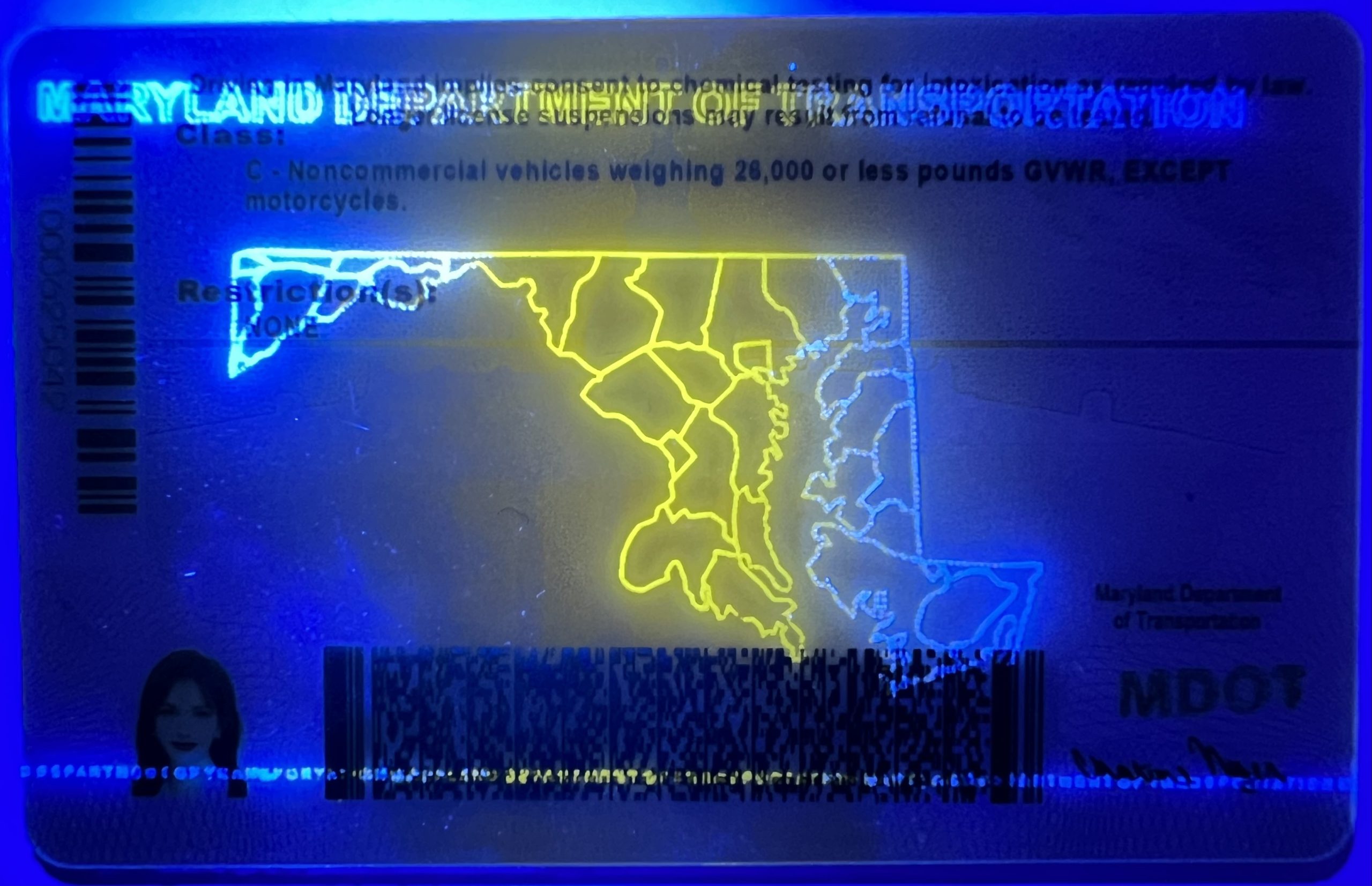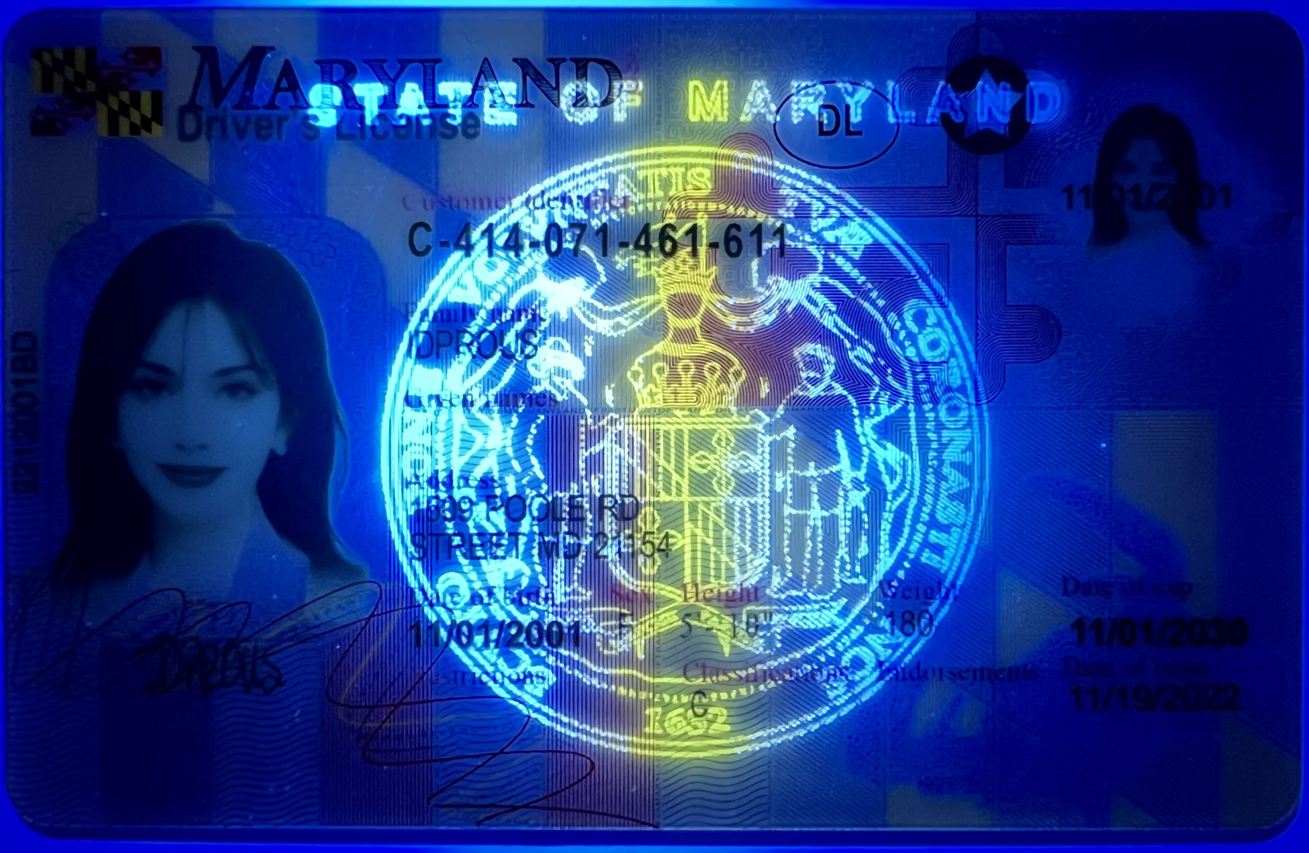 To achieve an exact replica of the holograms and other markings on original Maryland state IDs, we use laser engraving technology. This ensures that the Maryland ID that you get from us can scan, read, and authenticate.