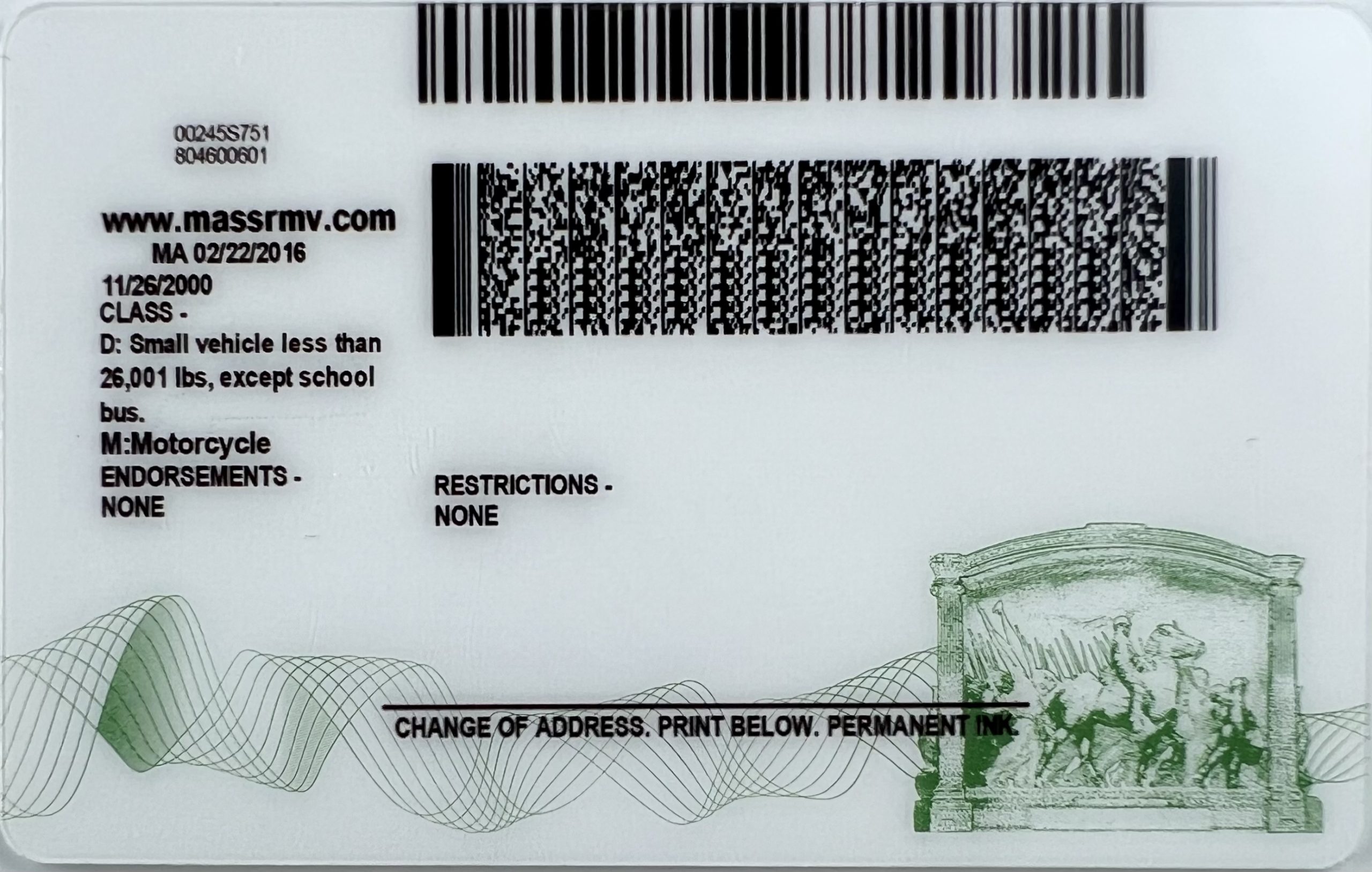 Usually, a scannable ID seller will provide you with multiple templates to choose from. Some sellers of Massachusetts scannable IDs provide their customers with the option to customize their IDs by adding additional information or changing the photo.