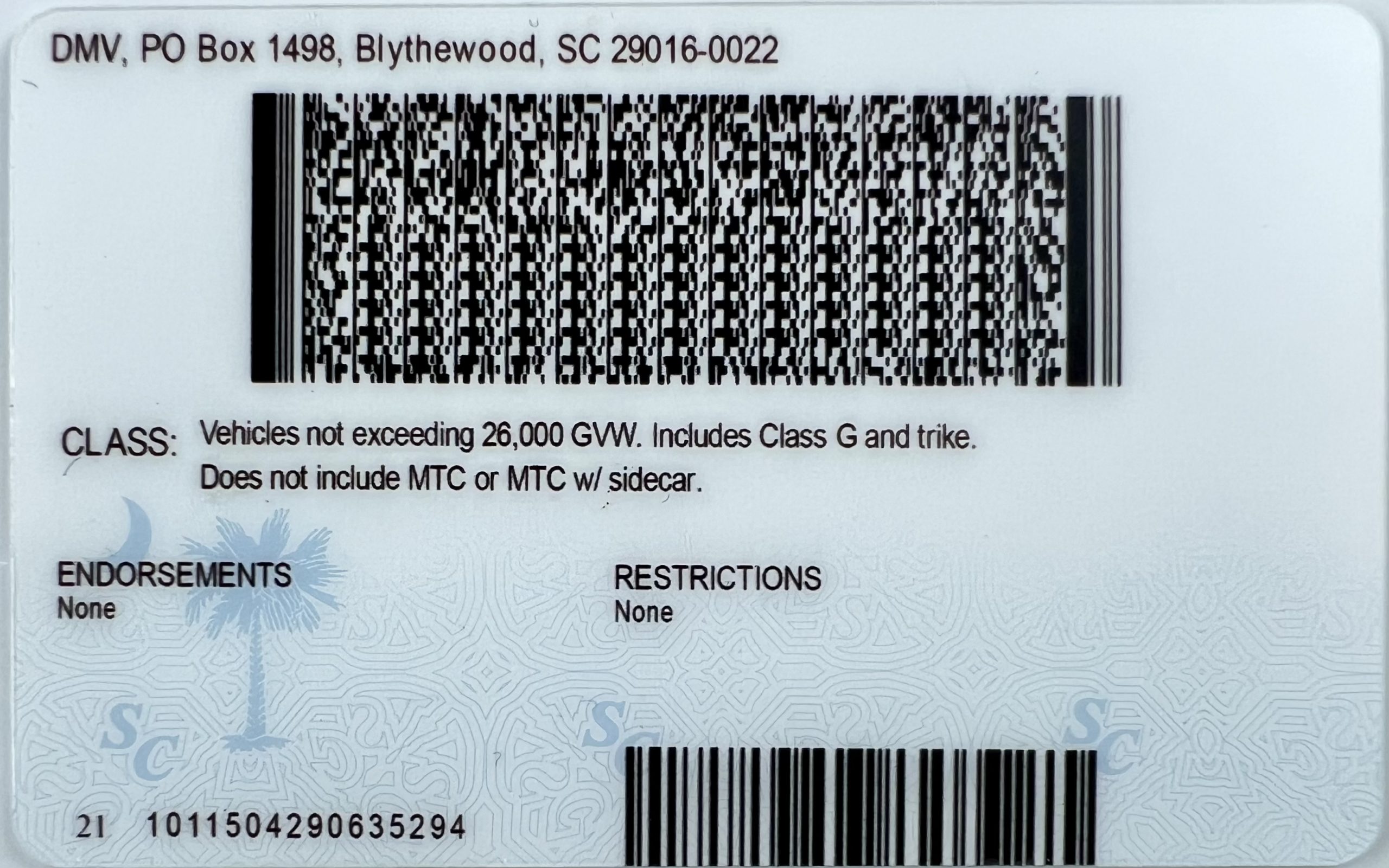 Our South Carolina ID is meticulously designed to replicate the actual South Carolina State ID. It incorporates crucial features such as a 1D and 2D barcode that can withstand advanced scanning systems, enhancing its authenticity.