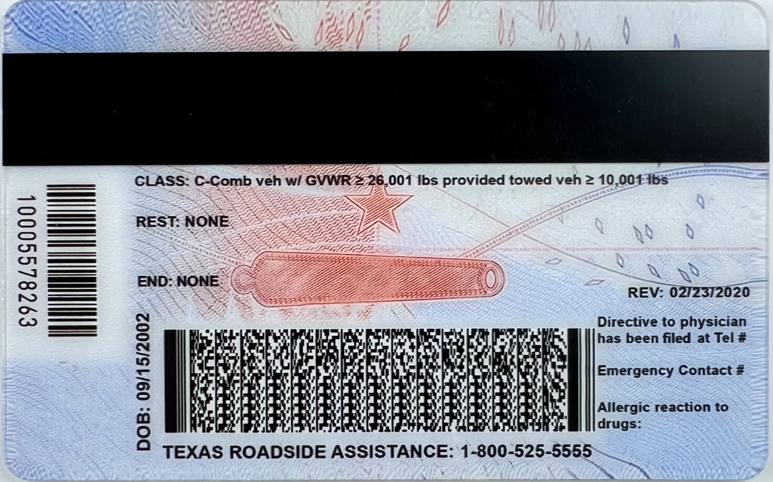 Our Texas ID is expertly designed to match the actual Texas State ID. It incorporates important features such as a 1D and 2D barcode, capable of passing complex scanning systems, enhancing its authenticity.